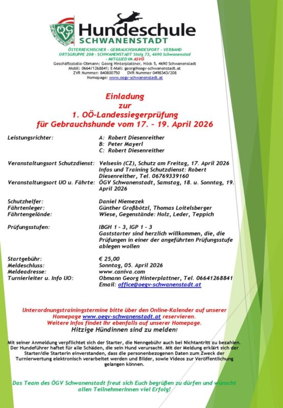 OÖ Landessiegerprüfung für Gebrauchshunde – Hundesport 17.-19.04.2026 🐾✨
